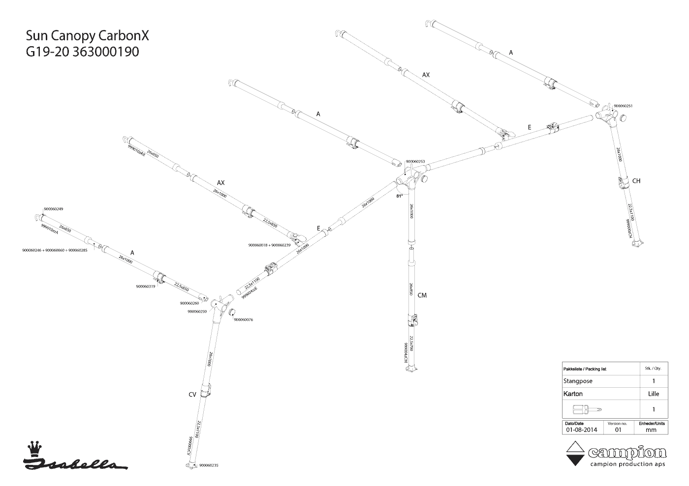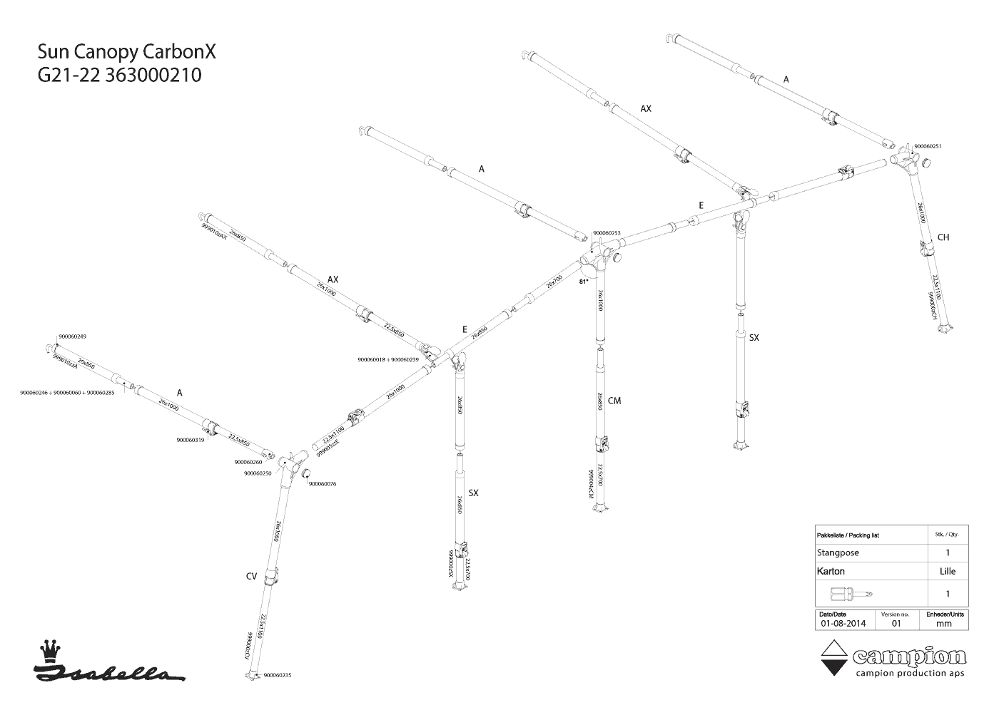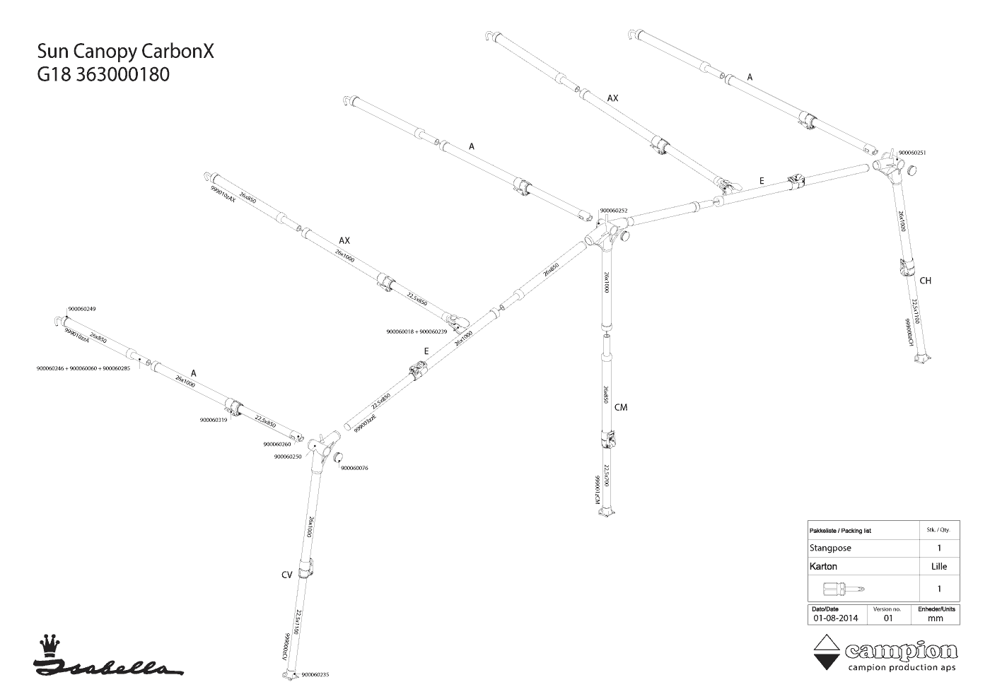 Via nedenstående link kan du finde steltegningen til netop dit telt. Her har du mulighed for at klikke direkte på den stang, du mangler. Når du har fundet stangen, kan du bestille den direkte på vores hjemmeside og hente den hos din Isabella forhandler.