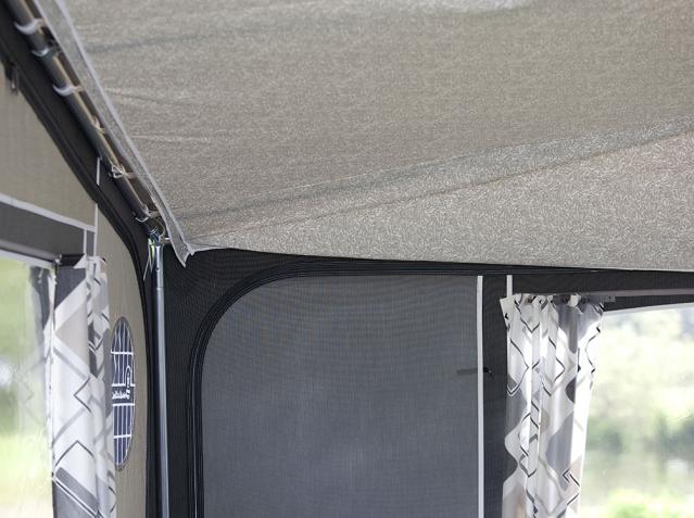 Le vélum de protection aide à réduire la condensation. Recommandé pour le camping pendant les saisons rudes. Se fixe avec les crochets Termo-Fix, disponible pour les auvents Penta, Universal et d’hiver.