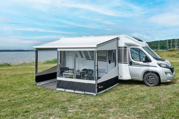 Créez un espace extérieur confortable devant votre caravane ou votre camping-car avec Wind Front, qui se fixe facilement à votre auvent enroulable pour un abri et un confort supplémentaires. Wind Front est disponible en 120 ou 220 cm de large et convient aux caravanes/véhicules d'une hauteur de montage de 245 à 270 cm.