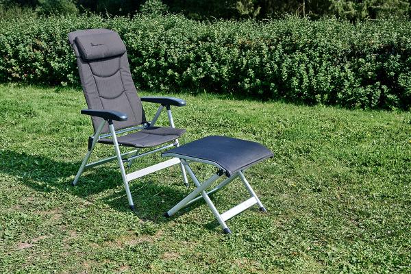 L’assise est recouverte de polyester résistant avec un revêtement en PVC et un léger rembourrage en mousse, offrant une surface douce et agréable. Le matériau est facile à nettoyer et conçu pour une utilisation en extérieur. Le repose-pieds Ran est proposé en coloris Dark Grey, une teinte discrète qui s’harmonise avec la plupart des environnements de camping et s’accorde avec de nombreuses chaises Isabella.