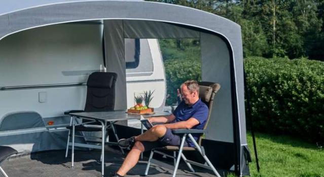 Le Ventura AIR Sol est une solette gonflable spacieux qui offre une ombre et un abri supplémentaires à l'avant de votre caravane. Grâce au système d'air intelligent où tous les boudins gonflables sont reliés, vous pouvez le gonfler rapidement à partir d'une seule valve, minimiser le risque de fuites et profiter d'une solette gonfable qui reste stable même lorsque le temps change. Sol crée une surface de 250 x 400 cm et contribue à maintenir une température basse dans la caravane car le soleil ne rentre pas par les fenêtres.