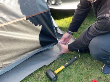 Nous vous montrons comment planter correctement les sardines de votre auvent afin qu'il reste stable durant toutes les vacances.