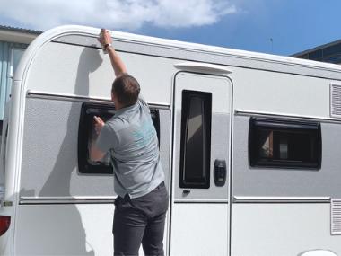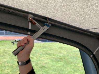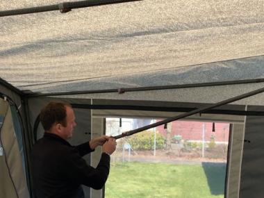Enfilez plus facilement l'auvent sur le rail de la caravane.