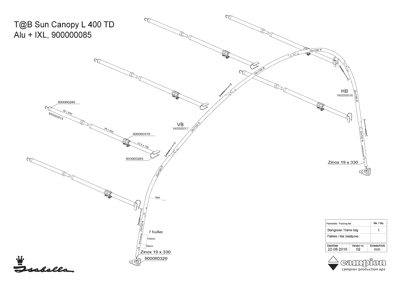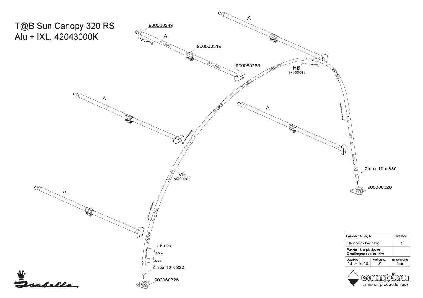 Grâce au lien ci-dessous vous pouvez trouver le plan d'armature de votre auvent. Vous avez alors la possibilité de cliquer directement sur la barre qui vous manque. Lorsque vous aurez trouvé la barre, vous pourrez la commander directement auprès de votre revendeur Isabella.