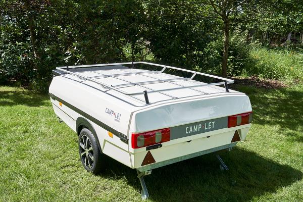 A roof rack gives you extra storage space on top of your Camp-let - ideal for chairs, sleeping bags and other equipment. The roof rack attaches to the aluminium rails and remains stable during transport.