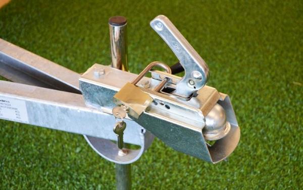 Das Kupplungsschloss sichert Ihren Camp-let gegen Diebstahl. Ist die Kugelkupplung damit abgeschlossen, kann sie nicht gekoppelt und dadurch auch nicht von einem Auto gezogen werden.