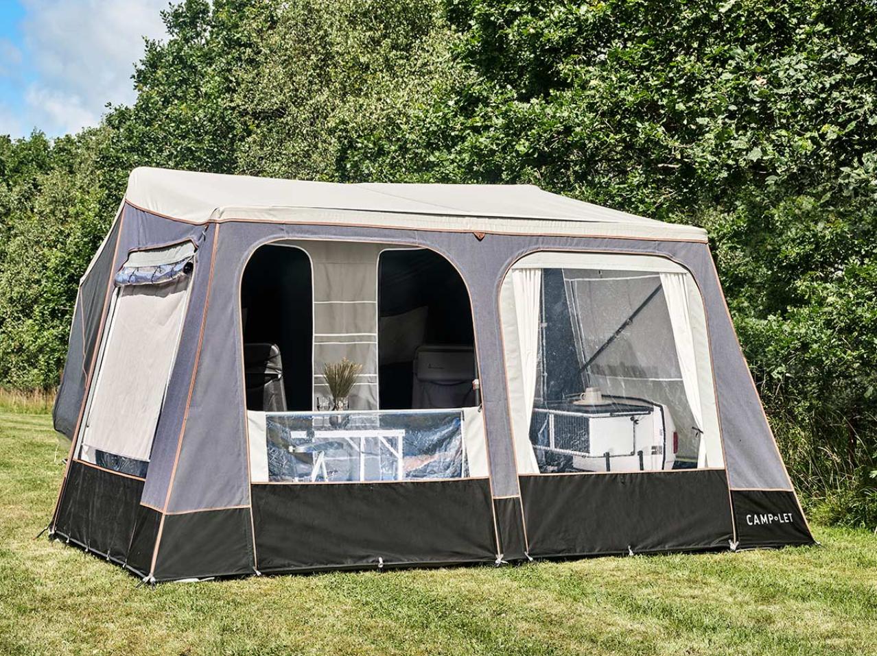 Camp-let is built to last for many years, inspired by Isabella's 65 years of experience in awnings. The front and side are made from fibre-dyed material, Isacryl, that won't fade in the sun. Isacryl is breathable and ensures an optimal indoor climate in the tent. It is also impregnated, making the tent fabric easy to clean, quick-drying, and resistant to rainwater.