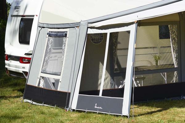 Jeśli używasz ściany bocznej i daszka Eclipse bezpośrednio z przyczepą kempingową (bez przedsionka), należy dokupić Eclipse Adaptor (261000416), który zapewnia szczelne połączenie daszka z przyczepą.