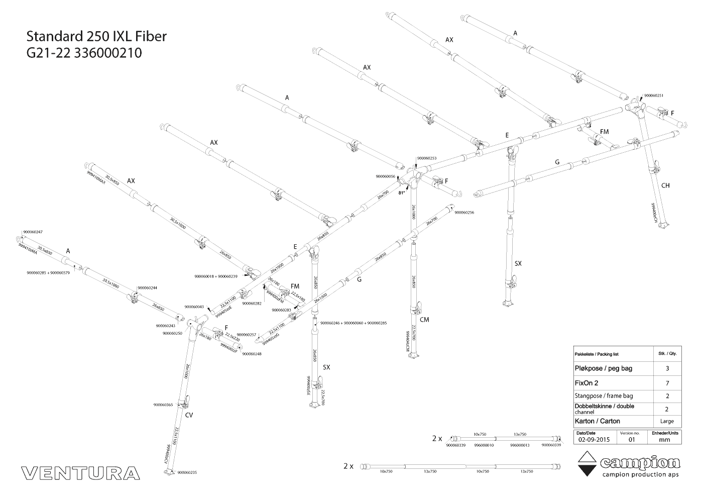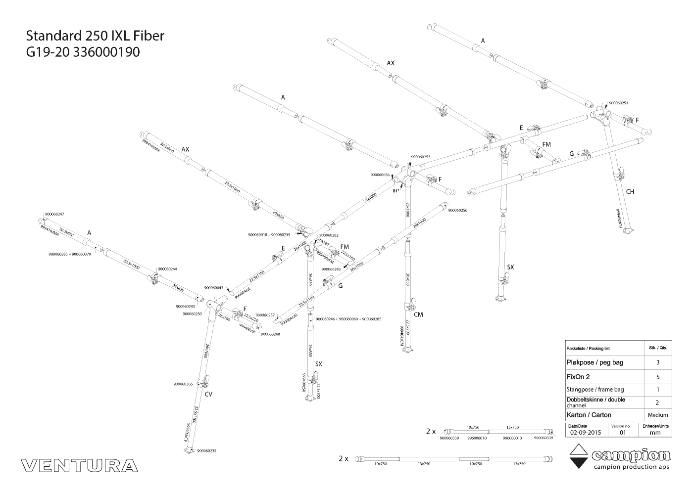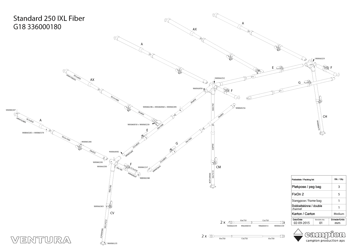 Instrukcje montażowe & rysunki stelaży do Ventura Standard 250 Pacific