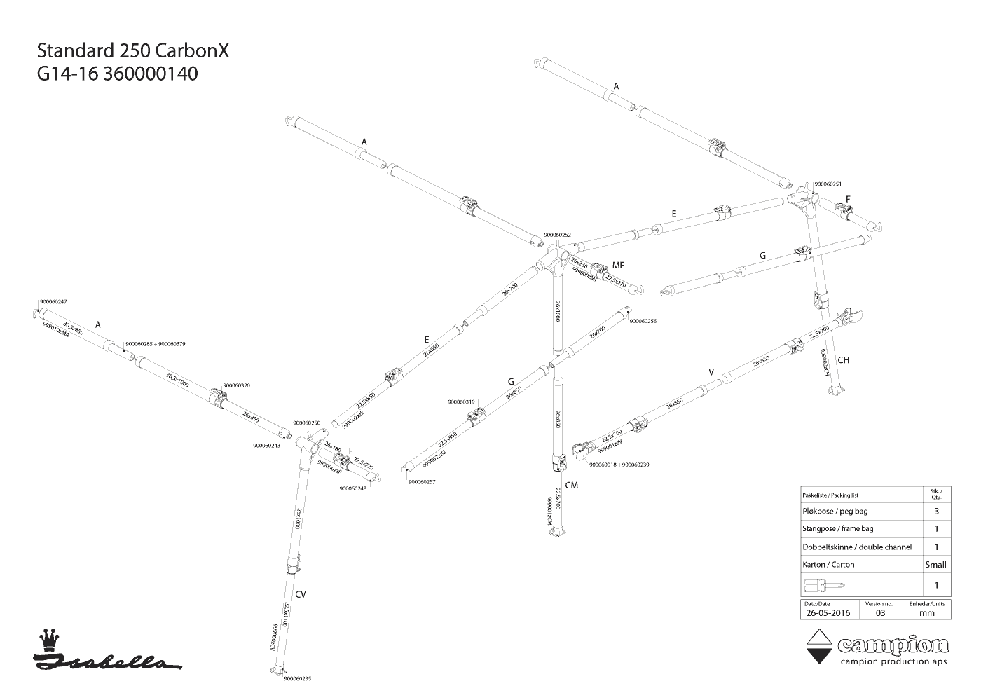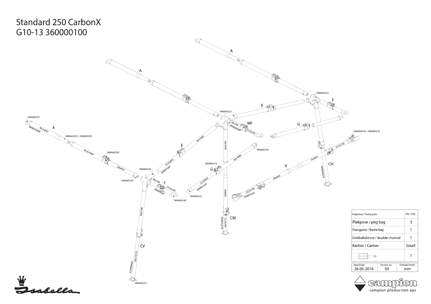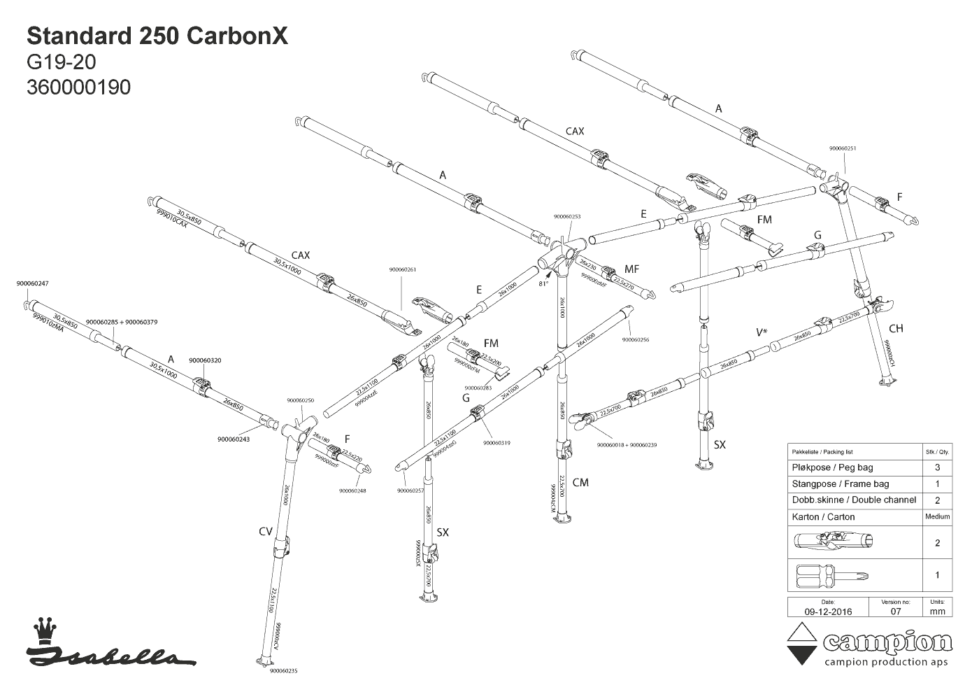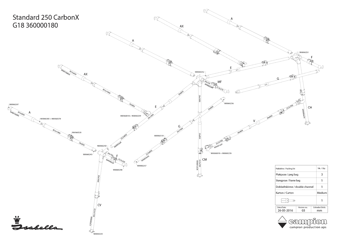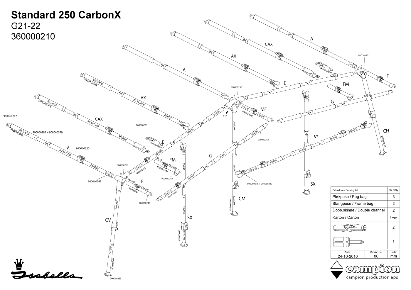 Här kan du hitta guider för montering, videor, stativritningar, instruktioner samt andra bruksanvisningar till Isabellas Standard 250-förtält (Ambassador och Capri).