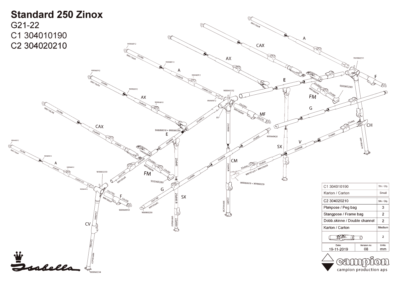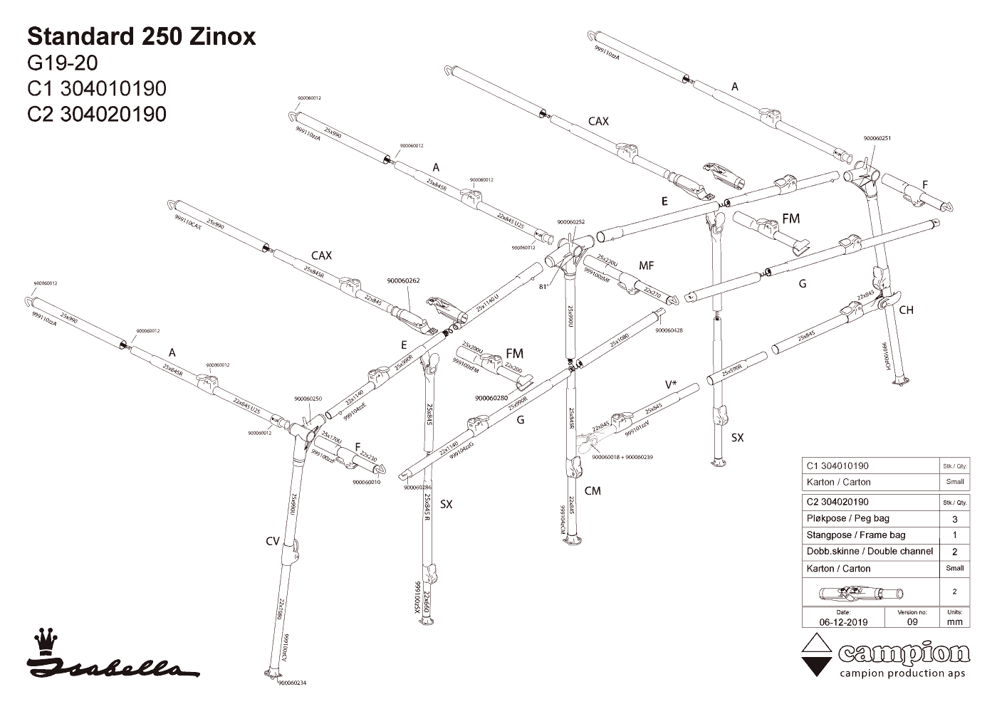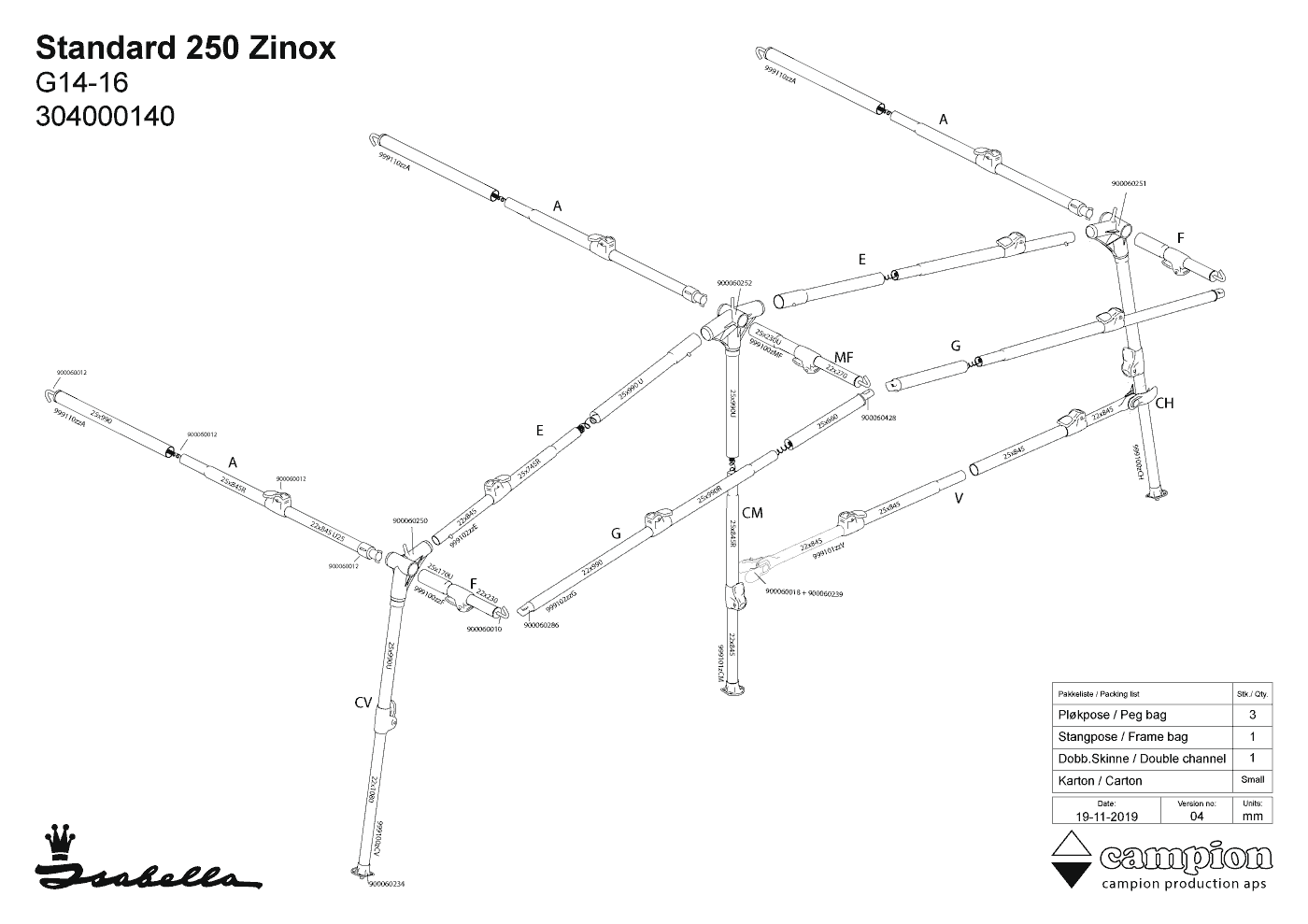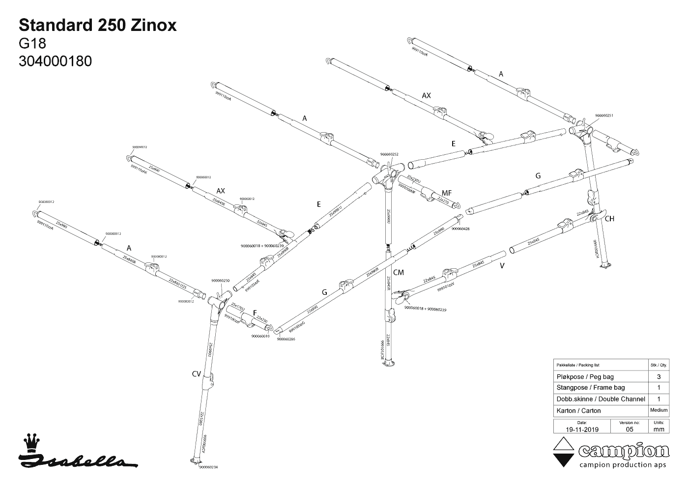 Guider för montering & stativritningar till Isabella Standard 250 fortelte