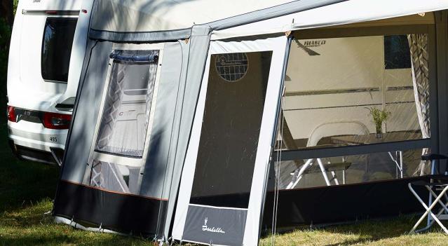 Ever had trouble finding room for an awning and a front sun canopy? It can often be hard to find the space on some camping sites for a 3-meter awning, such as a Commodore, and a standard front sun canopy with a depth of 2.25 meters. We’ve therefore developed the Mini Eclipse, which is just 1.5 meters deep.