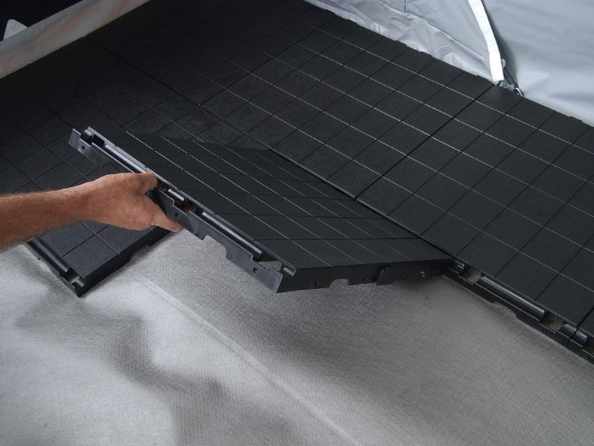 Lorsque vous passez beaucoup de temps dans votre auvent, il est agréable d'avoir un sol nivelé et un tapis plat. IsabellaFloor présente de nombreux avantages. Il est facile à monter sans utiliser d'outils, car les éléments sont munis de languettes de verrouillage et s'assemblent comme un système de blocs de construction. Il est facile à stocker et a une longue durée de vie. IsabellaFloor offre en outre la possibilité d'acheter des éléments de côtés, de façades et des coins, ce qui donne non seulement une belle finition, mais constitue également une mesure pratique pour les utilisateurs de fauteuils roulants ou pour les poussettes, par exemple.