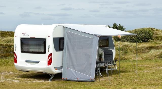 Achat supplémentaire : Pour un abri supplémentaire ou plus d'ombre, vous pouvez acheter des panneaux latéraux si la solette est fixée directement à la caravane. Il est également possible de monter les solettes Shadow 240 et 300 sur le côté de votre auvent. Vous aurez besoin d'un jonc en plastique de 5,8 mm (900060370) et de quatre profilés doubles de 75 cm (900000002).