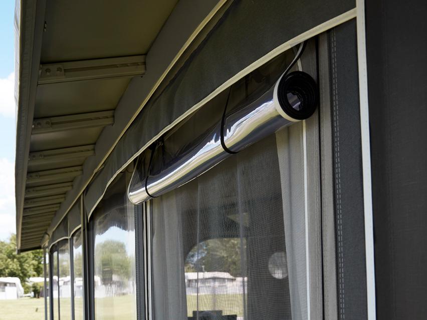 Le VILLA est également équipé de volets extérieurs qui peuvent être facilement refermés sur les fenêtres pour une isolation supplémentaire par temps froid ou lorsque vous quittez votre VILLA pour de longues périodes. Ces rabats pratiques peuvent être facilement enroulés et cachés sous une coque extérieure lorsqu'ils ne sont pas utilisés. De plus, le débordement sur tout le pourtour empêche la saleté et la poussière de s'écouler le long des fenêtres.