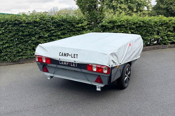 Die Fahrplane deckt auch die Naht der Heckklappe ab und schützt vor eindringendem Wasser - besonders nützlich für die Lagerung im Winter. Achten Sie darauf, dass das Camp-let leicht geneigt ist und das Buglaufrad entweder angehoben oder abgesenkt ist, damit das Wasser abfließen kann. Auf diese Weise bleibt Ihr Camp-let trocken und ist auch für den Frühling bereit.