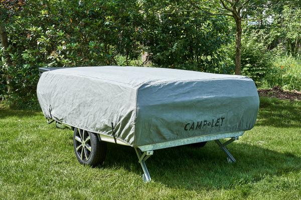 Wenn das Camp-let im Freien überwintert werden soll, empfehlen wir stattdessen die Verwendung einer Fahrplane (CLE0914312), die wasserdicht und auch für die Lagerung im Freien geeignet ist.