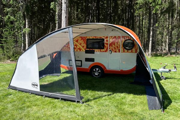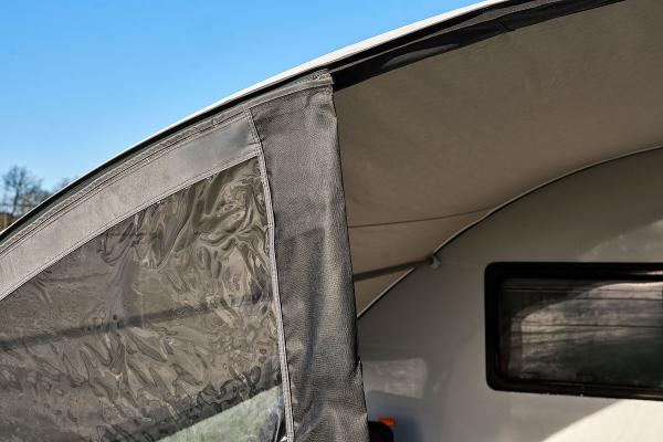 Maak je T@B luifel Plus nog knusser en praktischer met een voorpaneel. Dit voorpaneel kan eenvoudig worden vastgeritst om een knusse hoek te creëren - ideaal voor extra comfort en beschutting. Het voorpaneel bedekt ongeveer de helft van de voorkant van de luifel en is ontworpen met een ingebouwd kanaal voor het meegeleverde steunframe voor extra stabiliteit en ondersteuning.