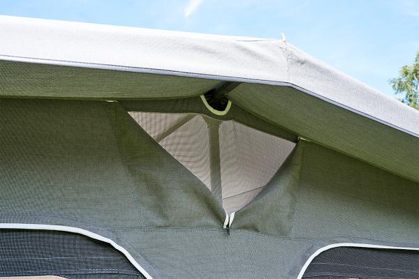 Frontene og sidene er laget av rengjøringsvennlig Isacryl, noe som sikrer at forteltets farger ikke falmer i solen. Isacryl er også svært pustende, noe som gir et optimalt inneklima i forteltet.